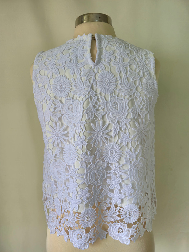 تاپ زنانه مجلسی گیپور آستین حلقه ای سفید