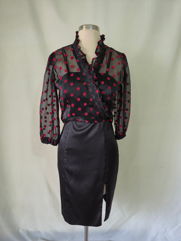 ست شومیز کراپ حریر خال دار و پیراهن ساتن کاپدار مشکی با کیفیت دوخت عالی و مزونی سایز 40 .خرید از فروشگاه پوشاک سارابرجوئی با ارسال سریع